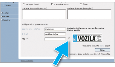 OBJAVITE VAŠ OGLAS BESPLATNO NA SAJTU I OZNAČITE GA DA SE ŠTAMPA U SLEDEĆEM BROJU ČASOPISA "OGLASI VOZILA"