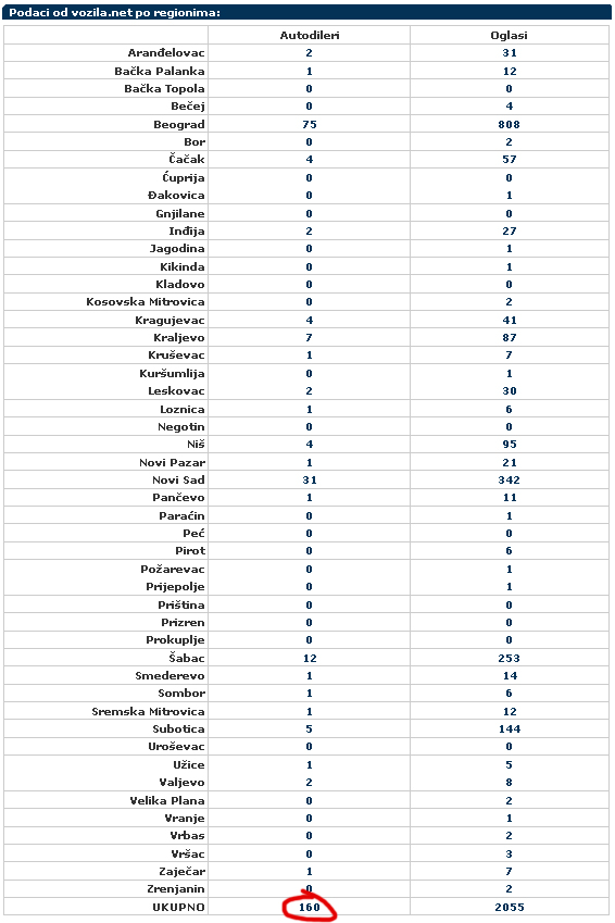 Na sajtu www.vozila.net registrovao se 160. klijent. Zahvaljujući svakodnevnom ažuriranju oglasa, na sajtu se nalazi preko 2.000 aktuelnih auto oglasa.